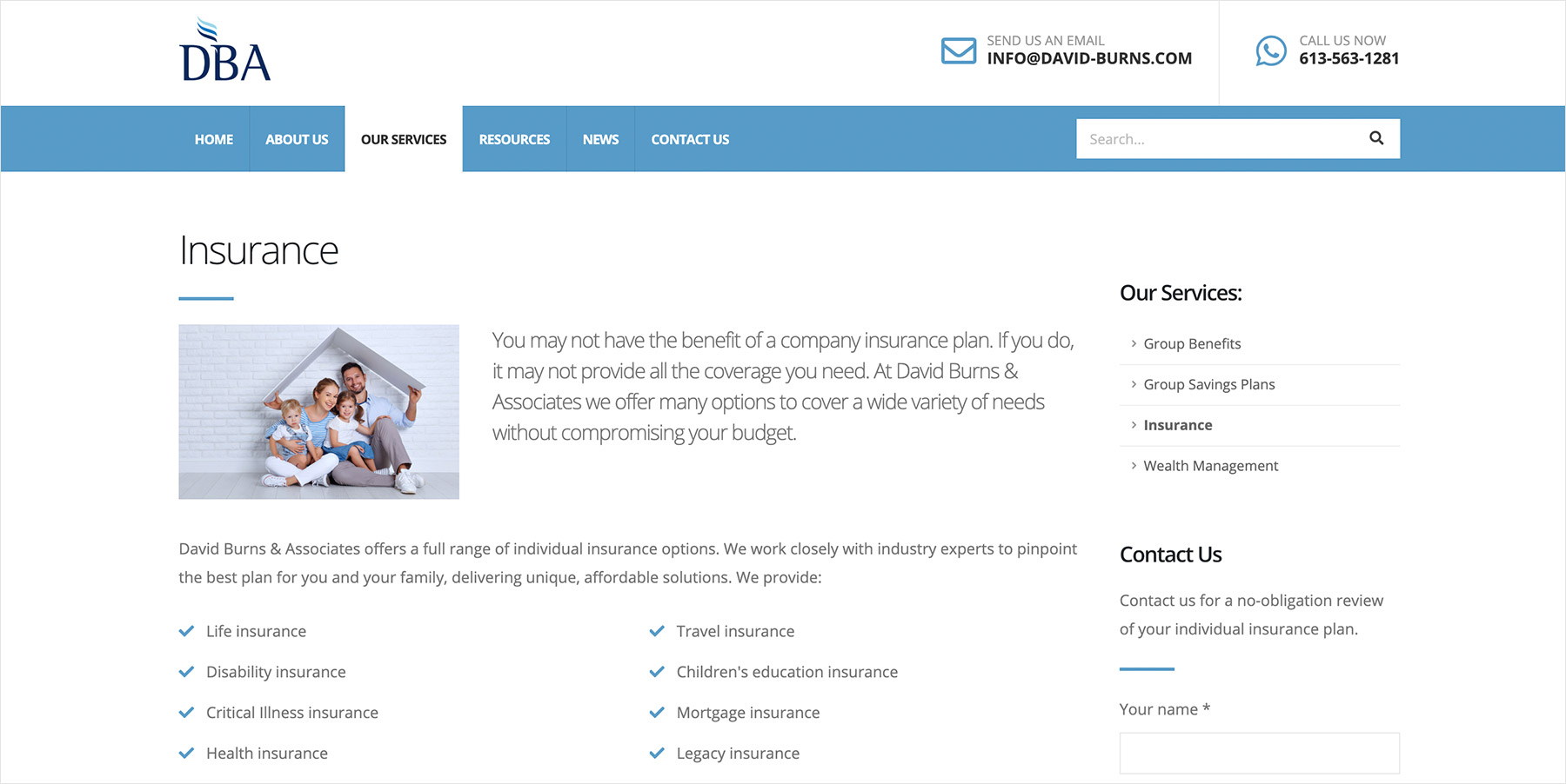 David Burns & Associates is a family-run business well established in the Ottawa community. It's a fourth-generation employer, trusted by scores of organizations and individuals. DB&A delivers a broad array of life insurance, group benefits, and investment services to a client base located primarily in the Ottawa area.