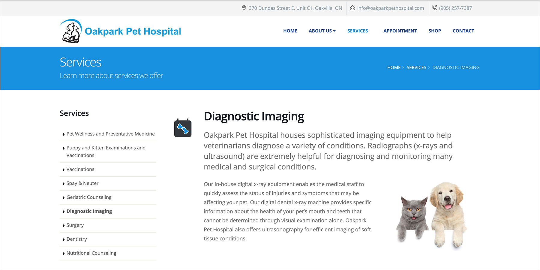 Oakpark Pet Hospital is providing a variety of veterinary services, including vaccinations, dentistry, nutritional counseling, weight management and surgery.